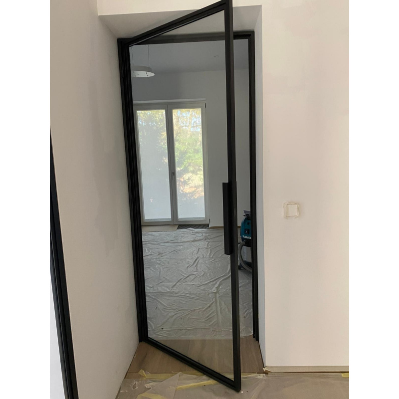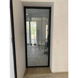 uvnitř dveří je 8mm ESG bezpečnostní kalené sklo v různém provedení - čiré, extra čiré, matelux, planibel šedý a bronz, matelux šedý a bronz, raywall 90T a všechny