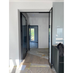 případně lze dveře kombinovat s pevnými díly na jedné nebo obou stranách, nebo zvolit dvoukřídlé dveře