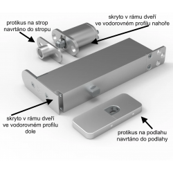 pozice pivotu je 90mm od hrany dveří. Při velkých šířkách dveří nad 1100 se musí pivot posunout více na střed, u 1500mm šířky je pivot na středu dveří