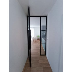 Dveře jsou z profilu ve tvaru U o rozměru 12x40mm, pod dveřmi je 10mm mezera, zárubeň je 12x61mm s těsněním v drážce okolo dveří, pod dveřmi je 10mm mezera