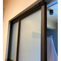 - používáme vlastní subtilní hliníkové profily (svislé rámy 12mm, vodorovné 33mm), hloubka dveří 33mm