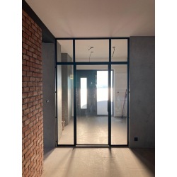 uvnitř dveří je 8mm ESG bezpečnostní kalené sklo v různém provedení - čiré, extra čiré, matelux, planibel šedý a bronz, matelux šedý a bronz, raywall 90T a všechny