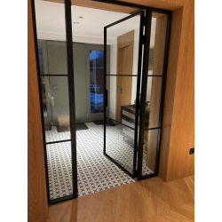 uvnitř dveří je 8mm ESG bezpečnostní kalené sklo v různém provedení - čiré, extra čiré, matelux, planibel šedý a bronz, matelux šedý a bronz, raywall 90T a všechny