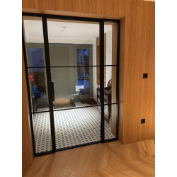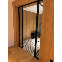 Dveře jsou z profilu ve tvaru U o rozměru 12x40mm, pod dveřmi je 10mm mezera, zárubeň je 12x61mm s těsněním v drážce okolo dveří, pod dveřmi je 10mm mezera