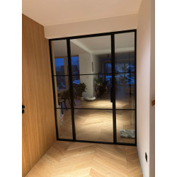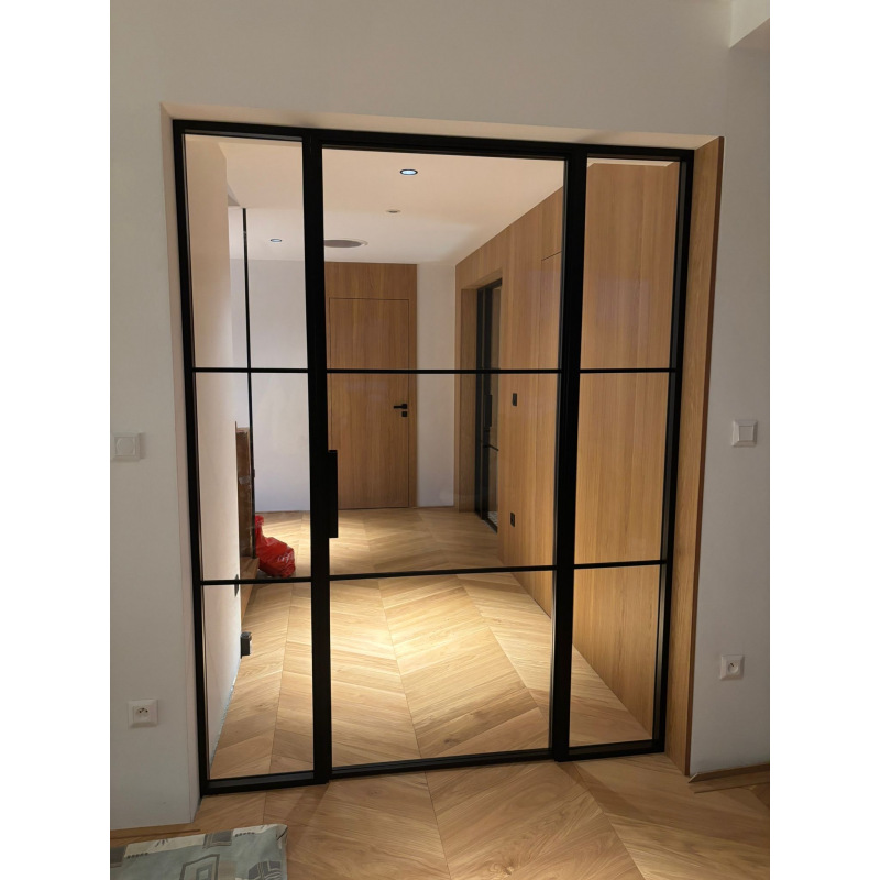 uvnitř dveří je 8mm ESG bezpečnostní kalené sklo v různém provedení - čiré, extra čiré, matelux, planibel šedý a bronz, matelux šedý a bronz, raywall 90T a všechny