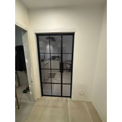 uvnitř dveří je 8mm ESG bezpečnostní kalené sklo v různém provedení - čiré, extra čiré, matelux, planibel šedý a bronz, matelux šedý a bronz, raywall 90T a všechny
