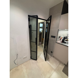 Dveře jsou z profilu ve tvaru U o rozměru 12x40mm, pod dveřmi je 10mm mezera, zárubeň je 12x61mm s těsněním v drážce okolo dveří, pod dveřmi je 10mm mezera